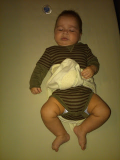 This is our sweet boy when he isn't grunting because of his digestive issues. Aren't his basketball shorts just soooo cute? Bonus: I scored them at Babies R Us for $2 . ;-)